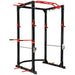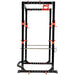 Eight integrated band pegs, a multi grip pull up bar and heavy duty spotter arms make this more than just a squat rack. It is a complete strength training base.